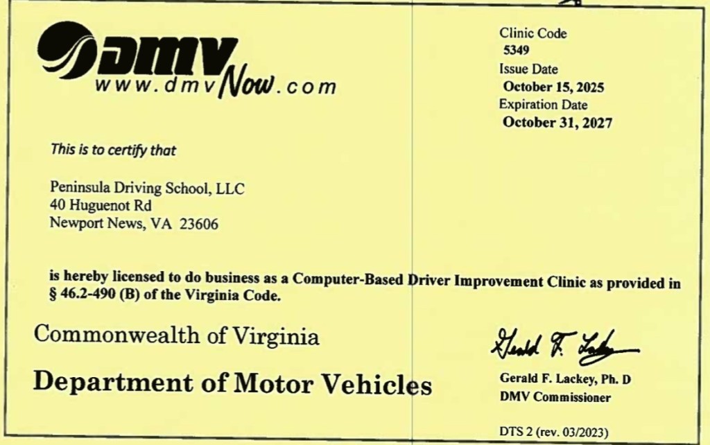 Online DMV State Approved Driver Improvement Clinic. Price $60.00