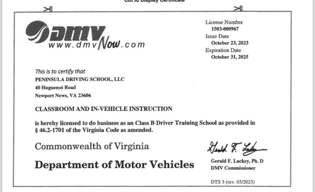 Peninsula Driving School LLC offers an instructional driving program for teens and adults with the desire to learn how to become a master of the road. We serve Newport News, Hampton, Yorktown, and Poquoson with your driving school needs. When you are ready to sit behind the driver’s